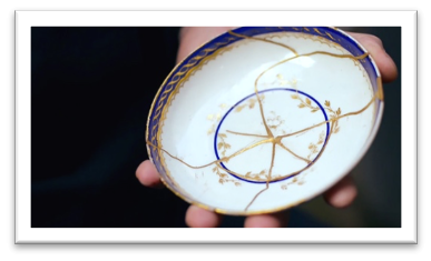 Kintsugi is the Japanese art of putting broken pottery pieces back together using gold as the adhesive. It’s built on the idea that, in embracing flaws and imperfections, you can create a stronger, more beautiful piece of art. Kintsugi says “embrace brokenness, add creativity and imagination, the result is beauty.”